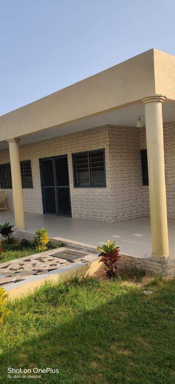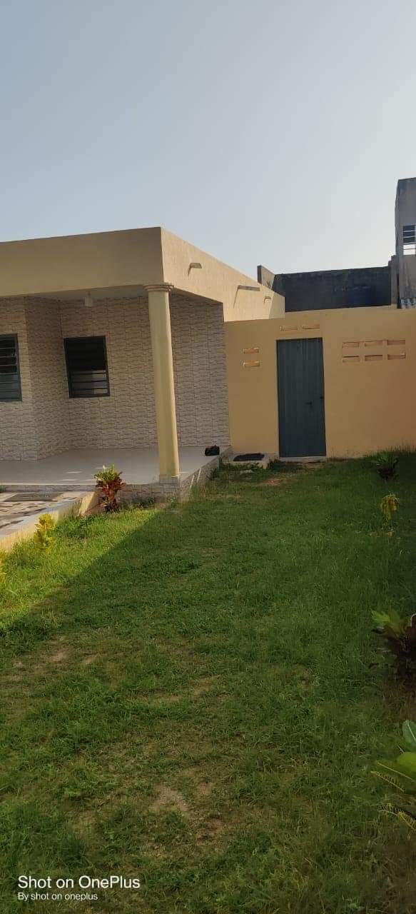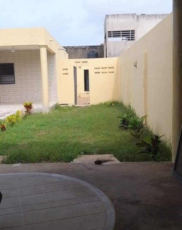 Une villa de 3 chambre salon WC douche dans chaque chambre cuisine garage pour 2 voitures une dépendance avec son WC douche construite sur une surface de (600m²) où 1 lot à baguida côté plage