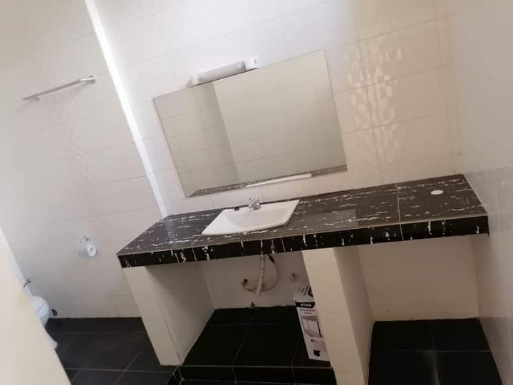la villa est composé de 2 chambres salon WC douche interne cuisine bien carrelé + boyories et une grande cour Couverte de gazon