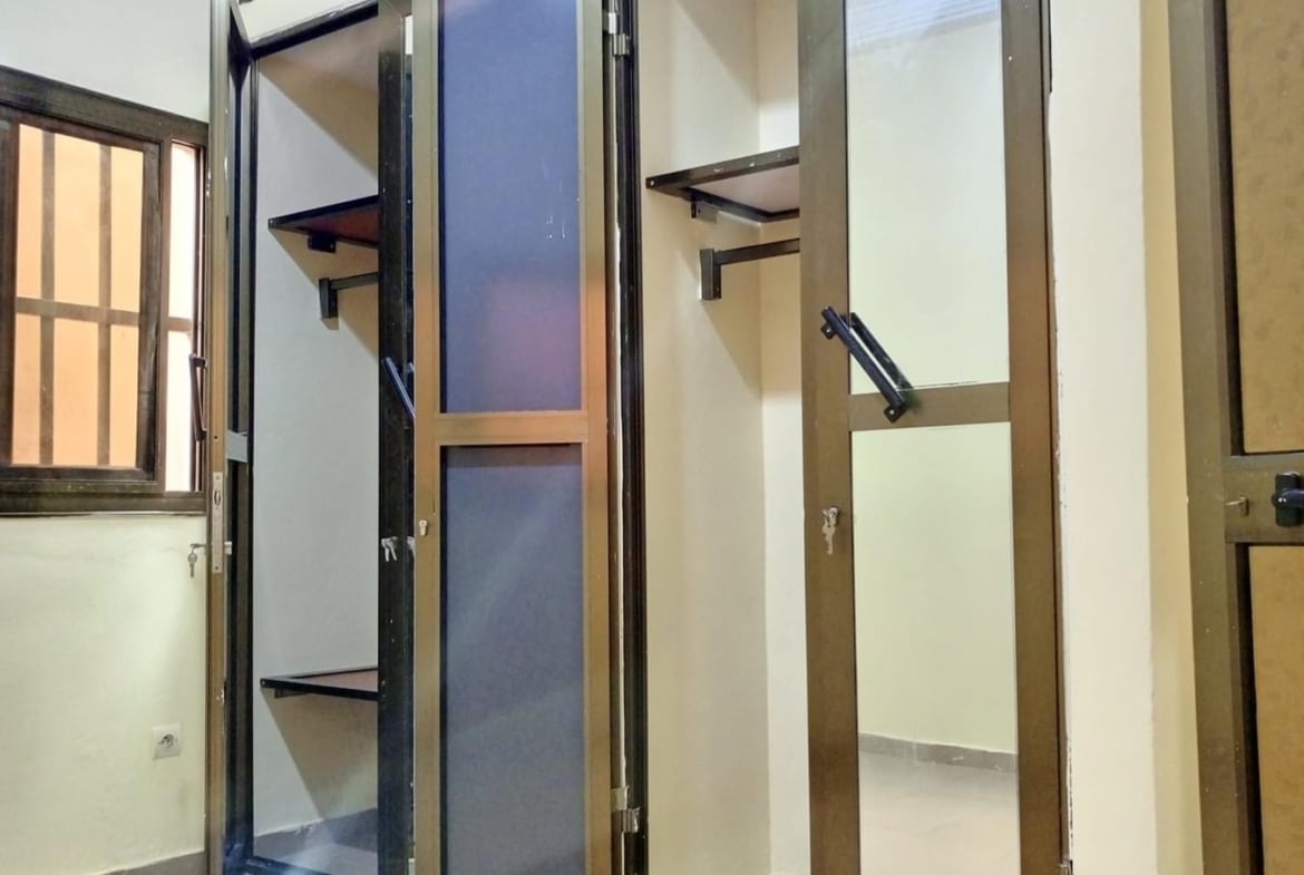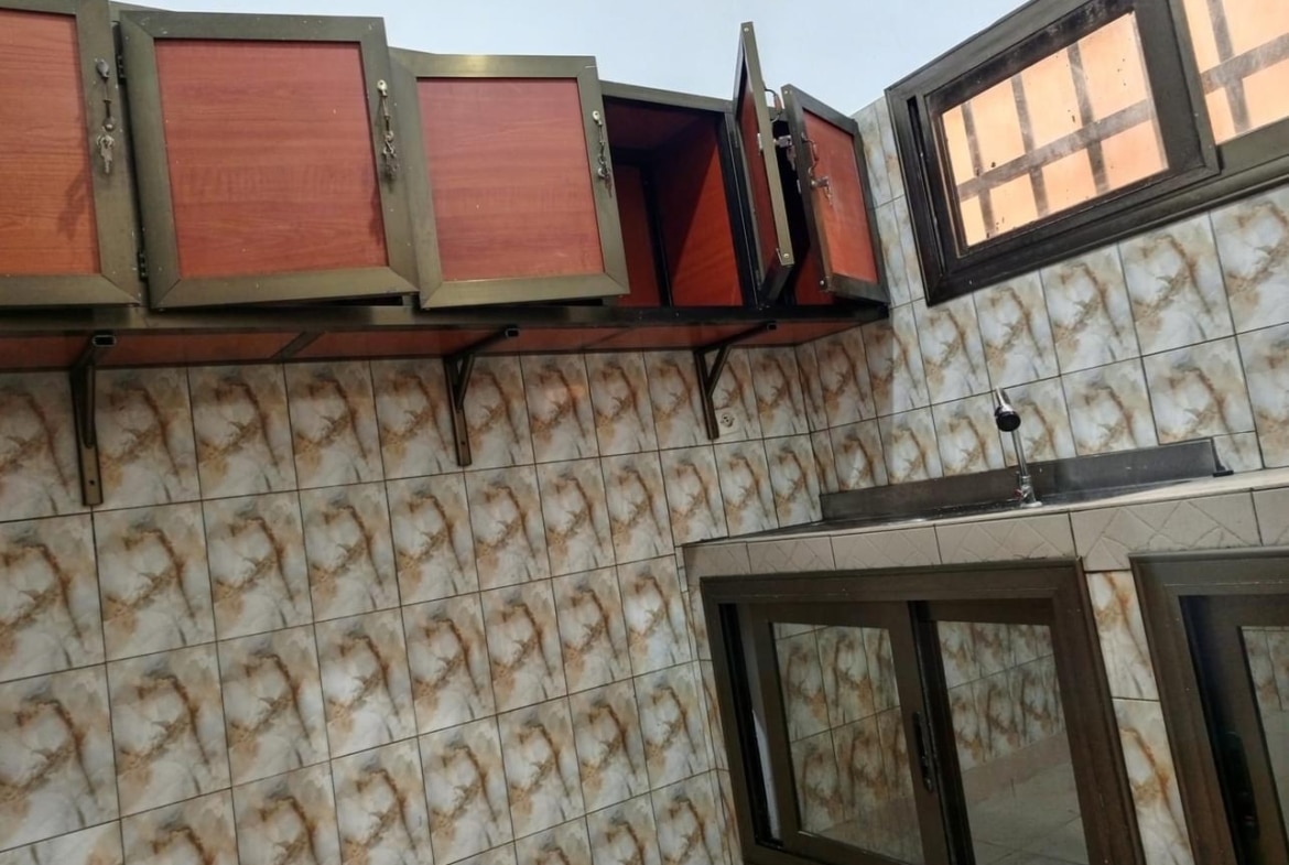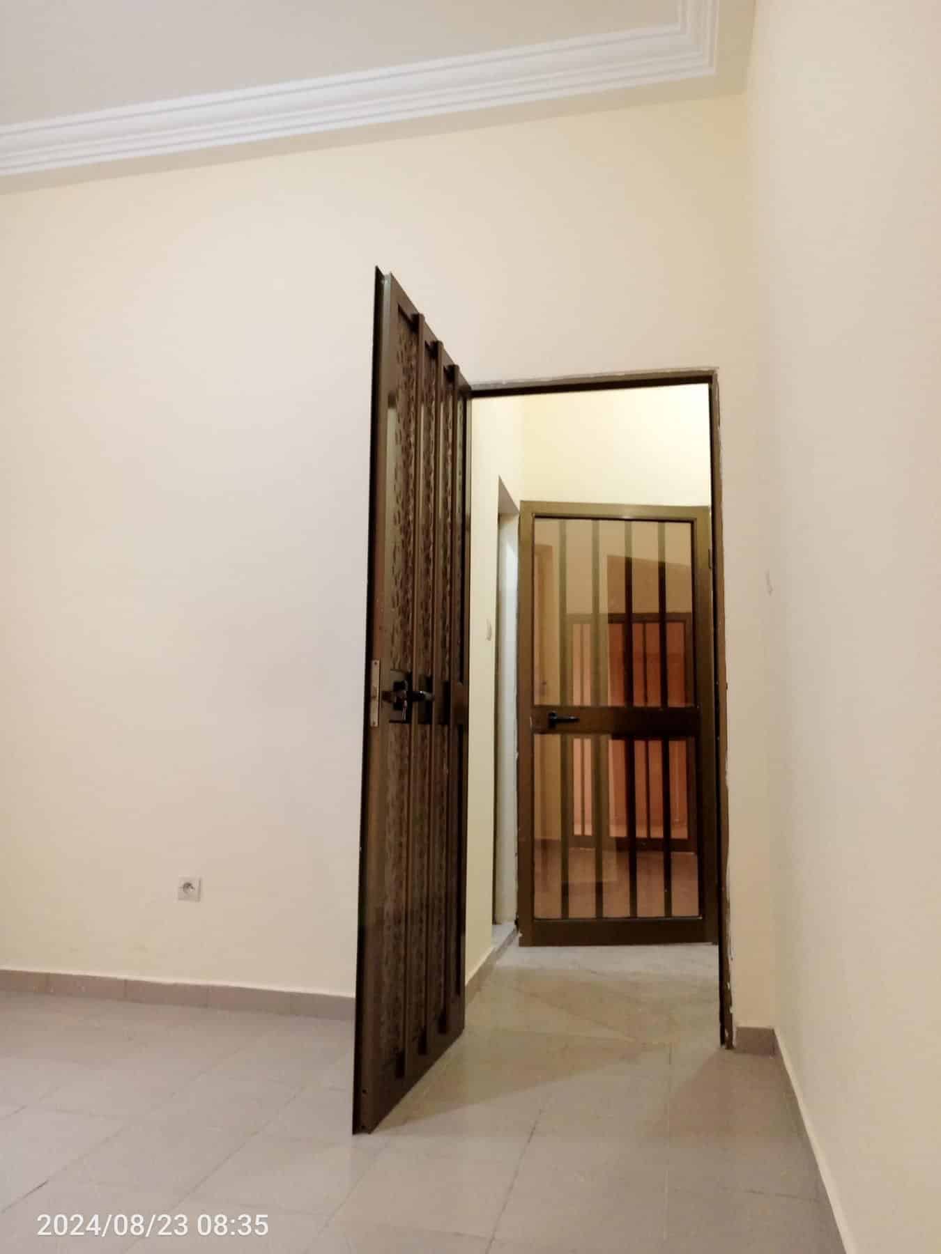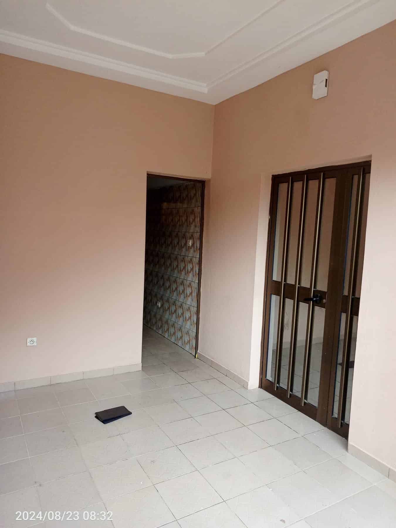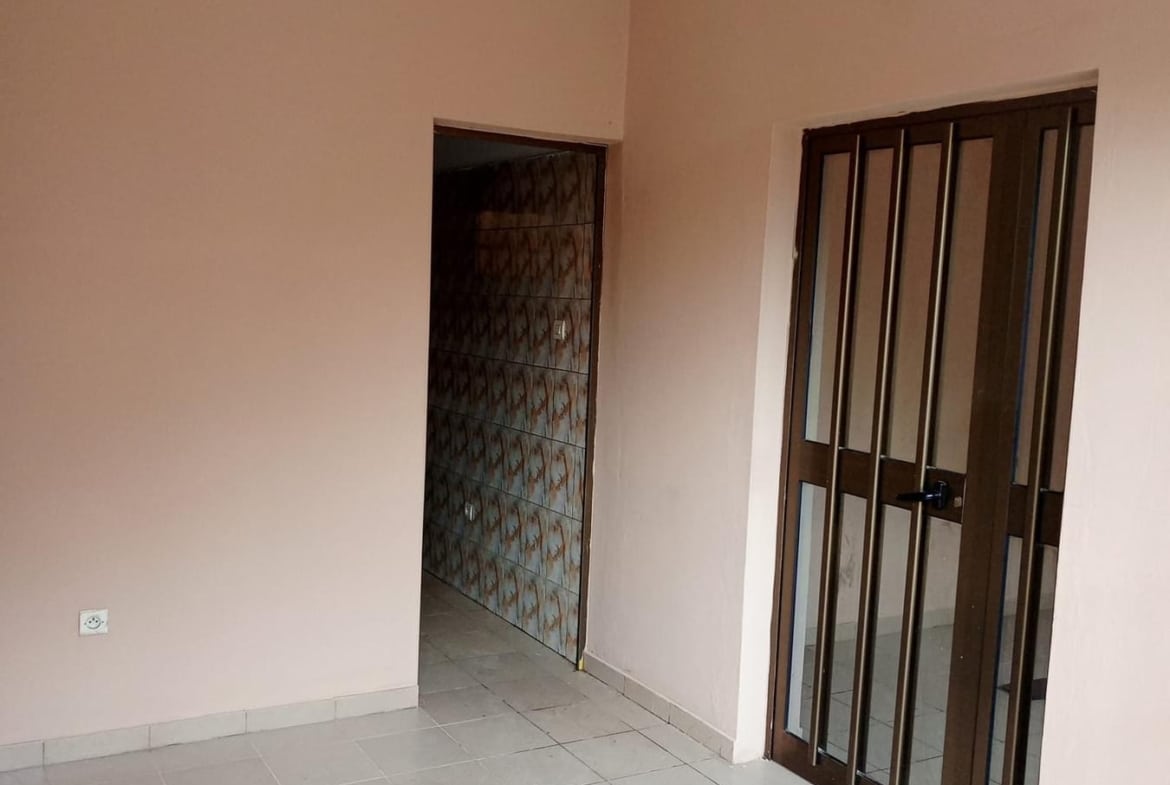 À Louer 2chsalons bien staffée WC douche interne cuisine avec placard, terrasse avec grille fermée avec un petit magasin, placard large dans la chambre principale, cash power personnel.