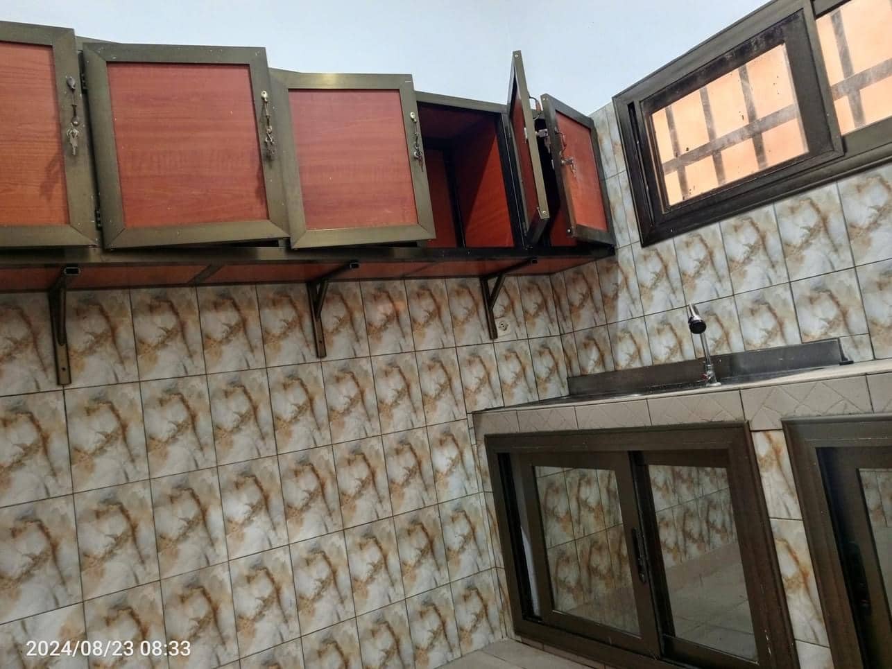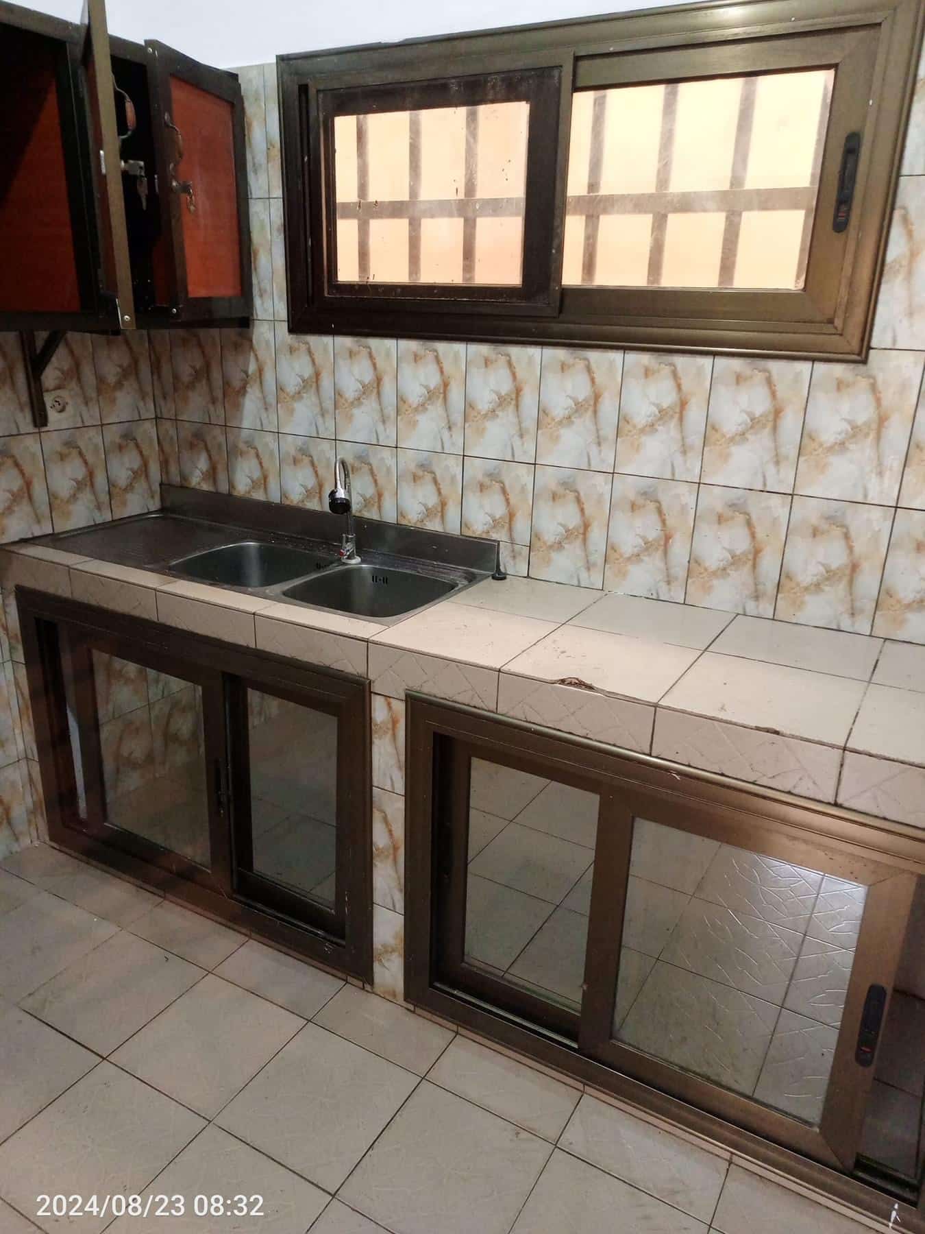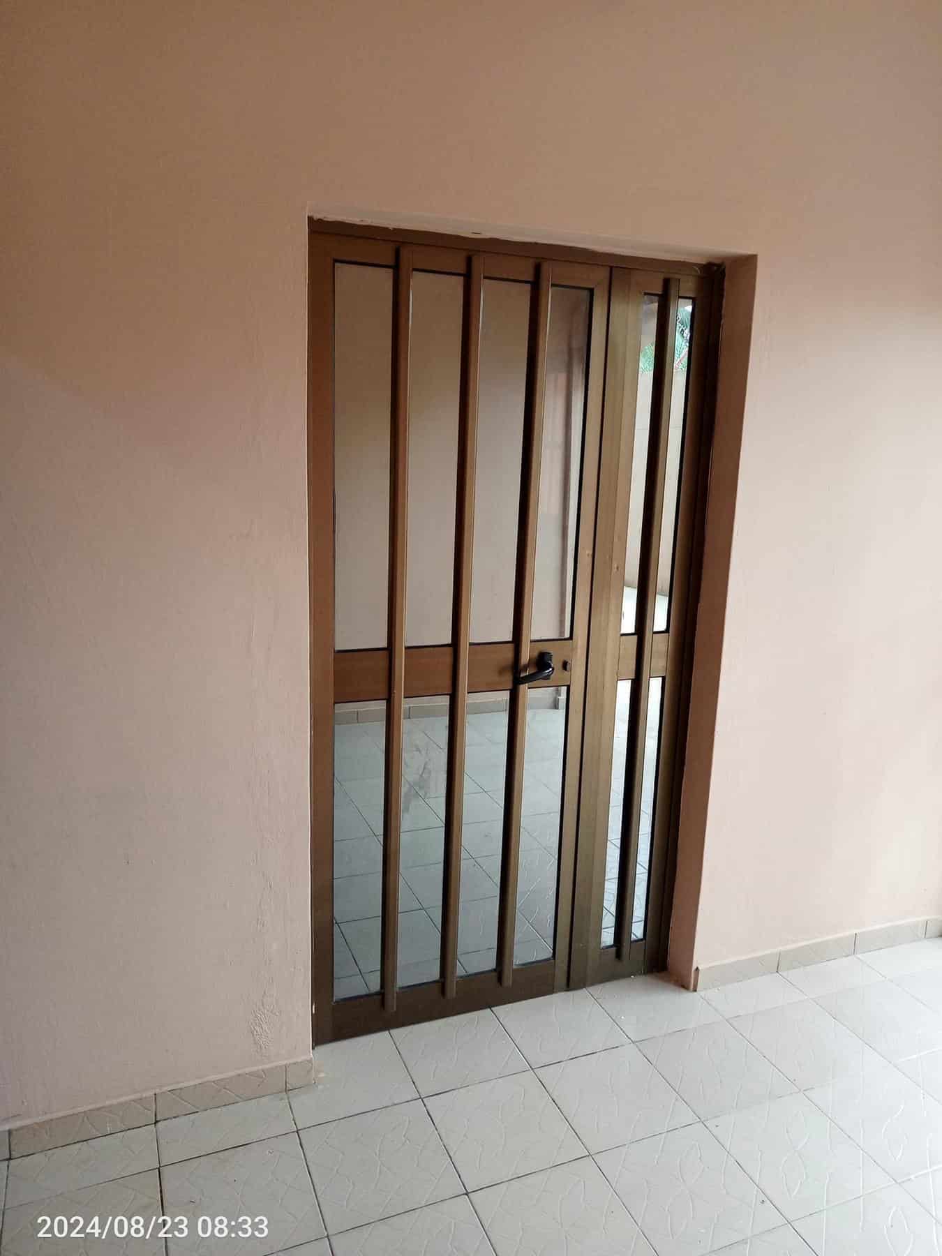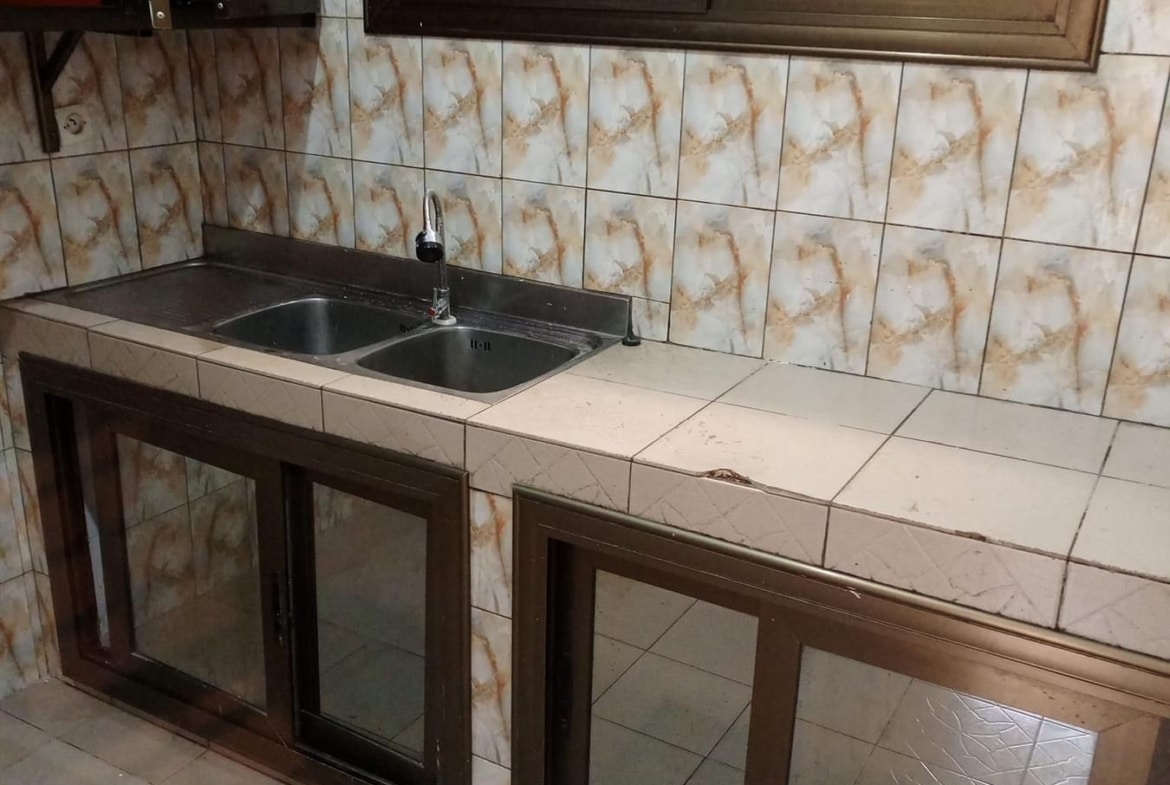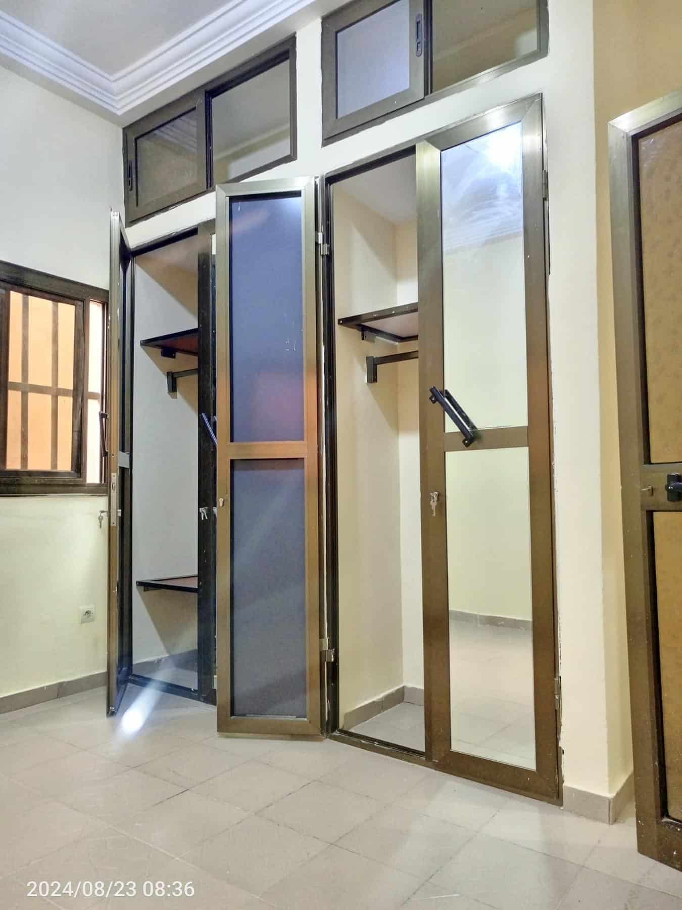 À Louer 2chsalons bien staffée WC douche interne cuisine avec placard, terrasse avec grille fermée avec un petit magasin, placard large dans la chambre principale, cash power personnel.