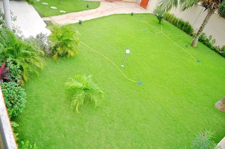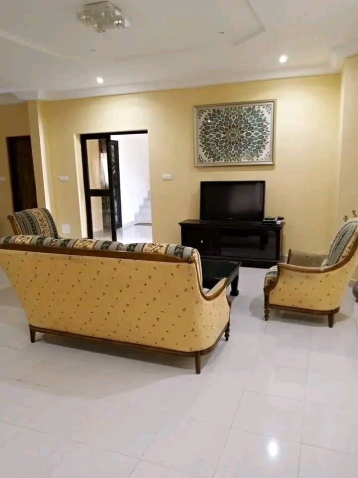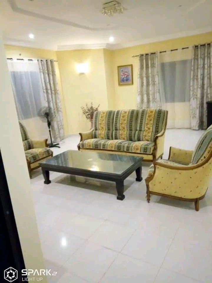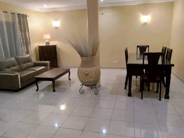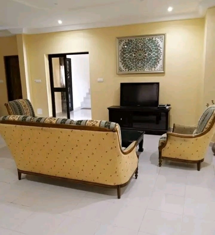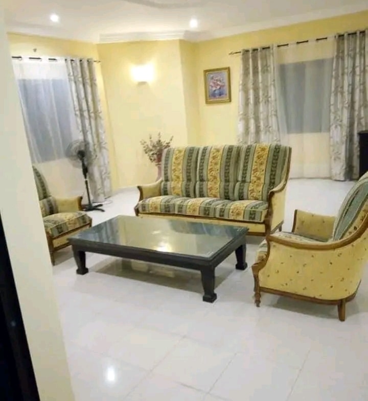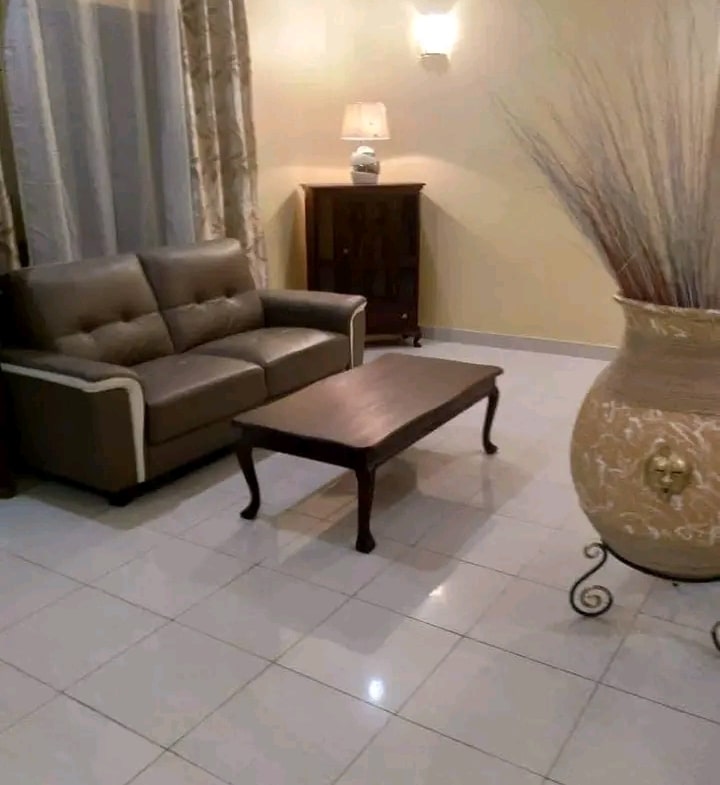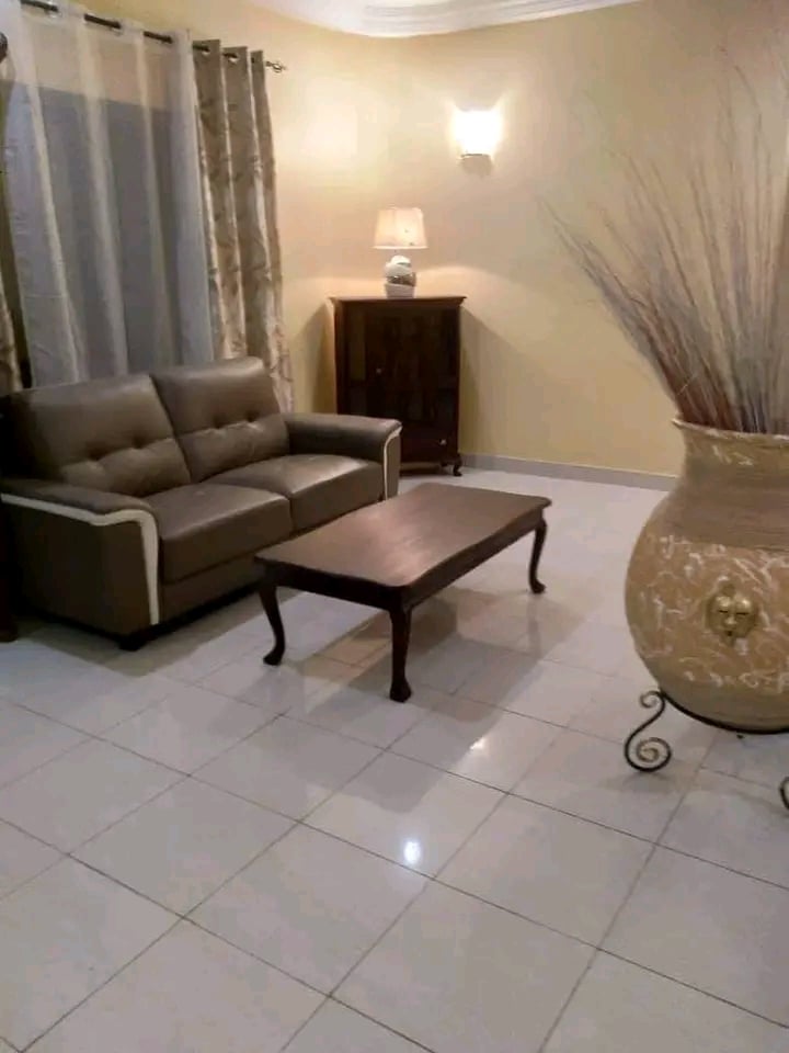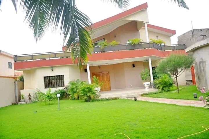 Une si belle villa de 3 chambres salon wc douche interne dans toutes les chambres, deux salons et deux cuisines au rez et à l’étage. Espace jardin bien entretenu. Garage disponible.