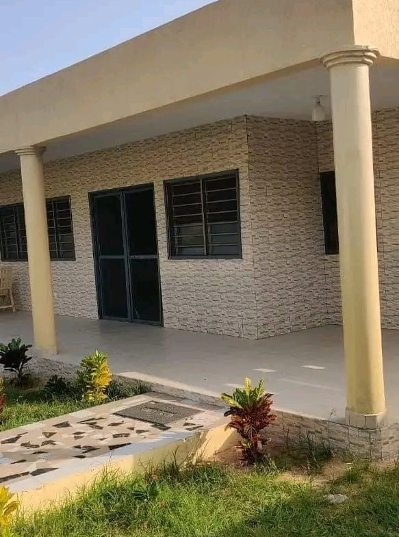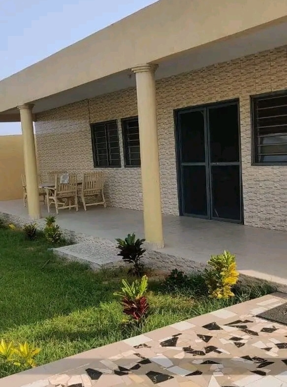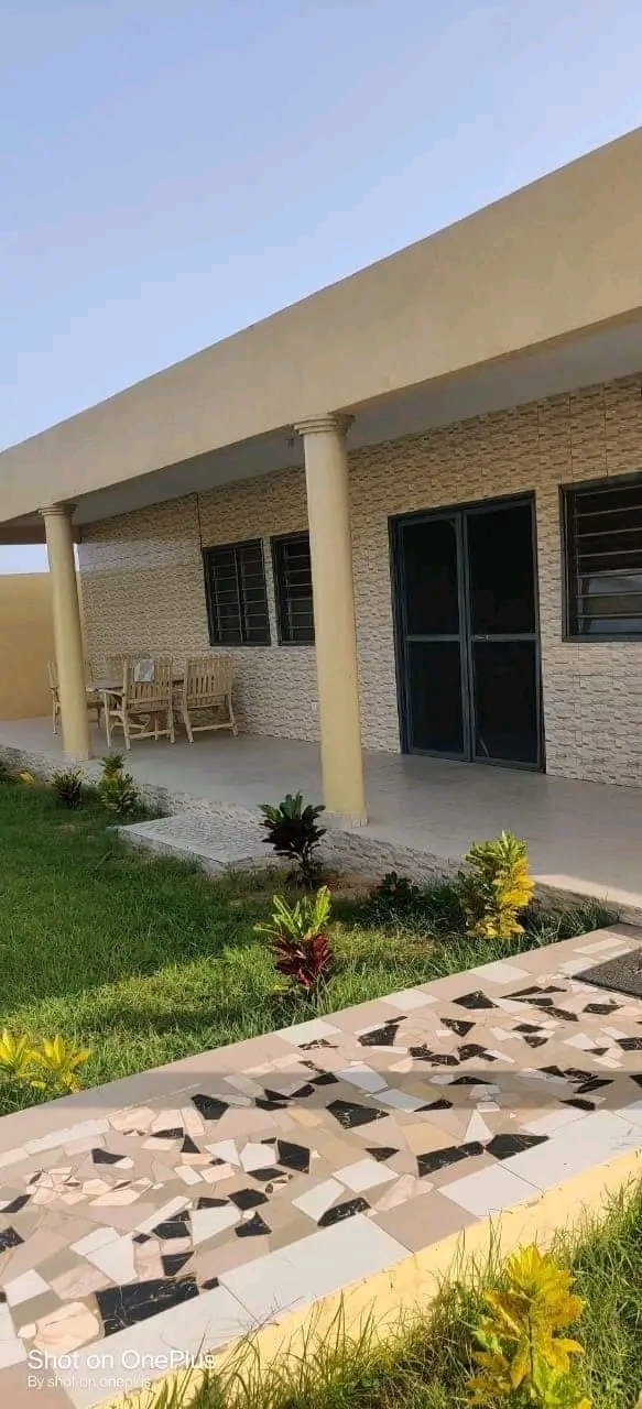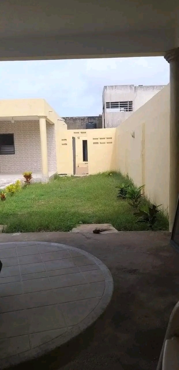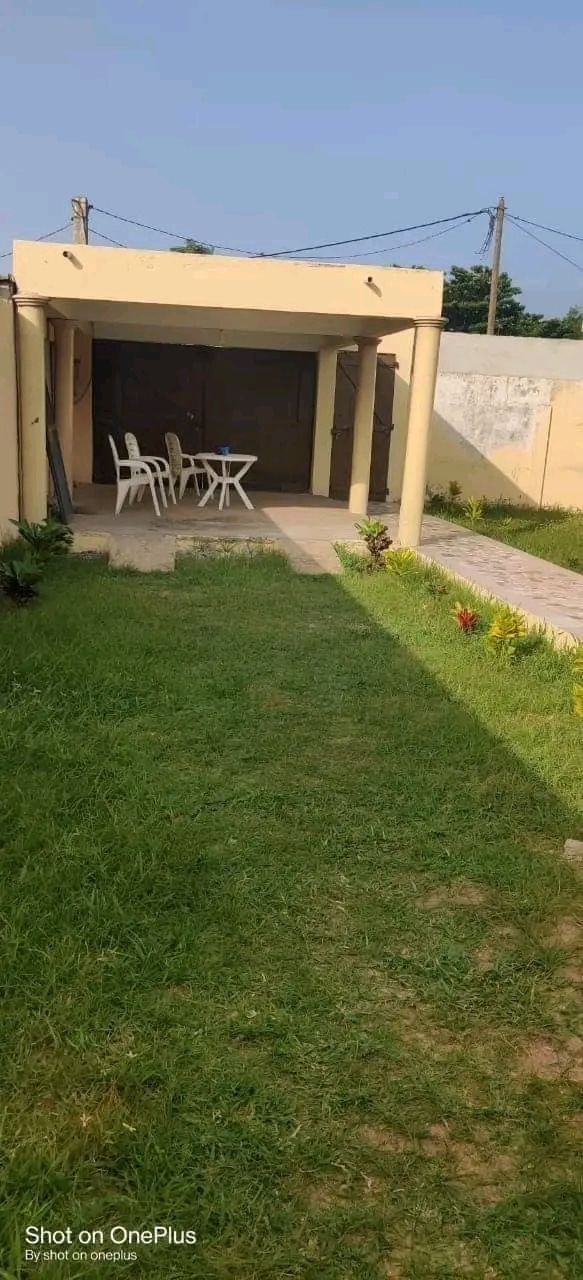 Une villa de 3 chambre salon WC douche dans chaque chambre cuisine garage pour 2 voitures une dépendance avec son WC douche construite sur une surface de (600m²) où 1 lot à baguida côté plage