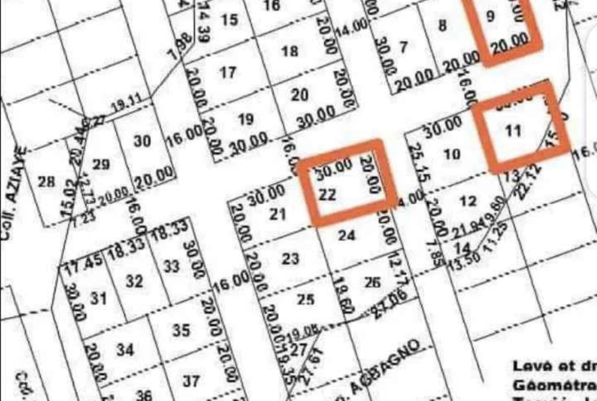 Nous vendons 3 lots , les trois sur angle rue ( rue de 16m ) comme l’indique le plan ( Lot 9 , 11 et 22 ) situé au niveau de l’hôtel Eco village non loin de l’école nationale de Police juste à 300m de la nationale N,1 ( goudron) milieu habité et ÉLECTRIFIÉ bref c’est en plein ville et à quelque pas du nouveau contournement.