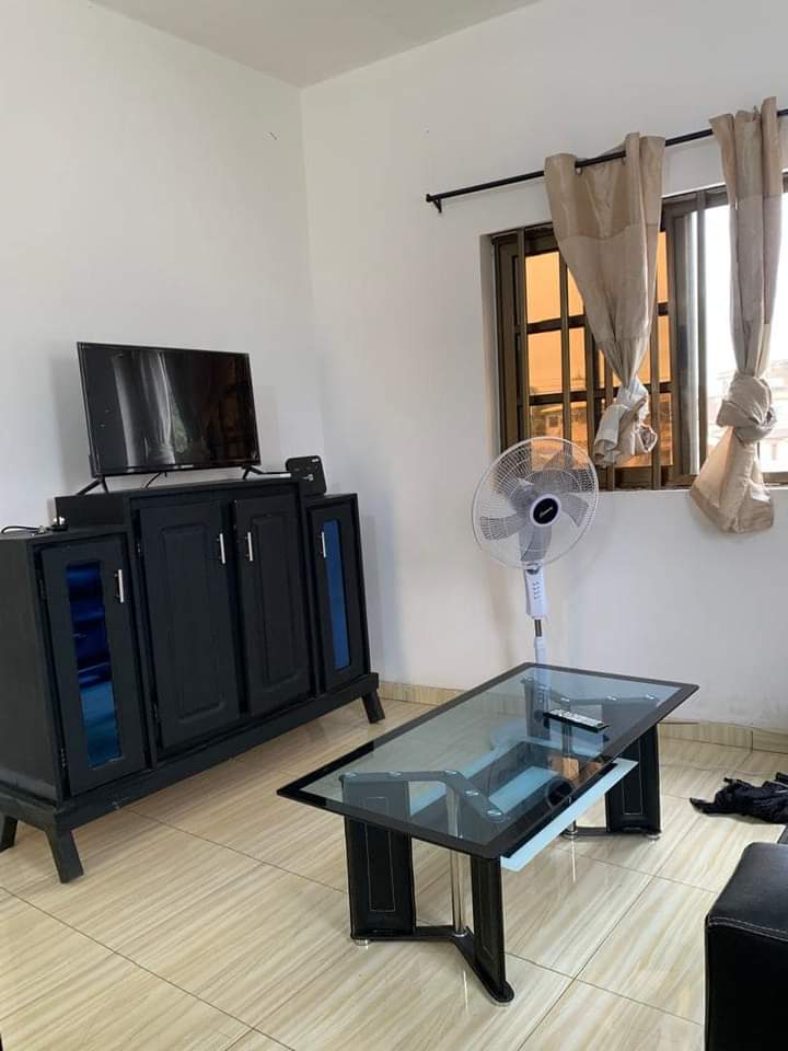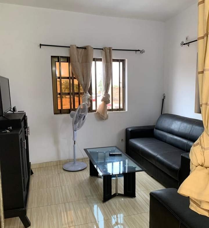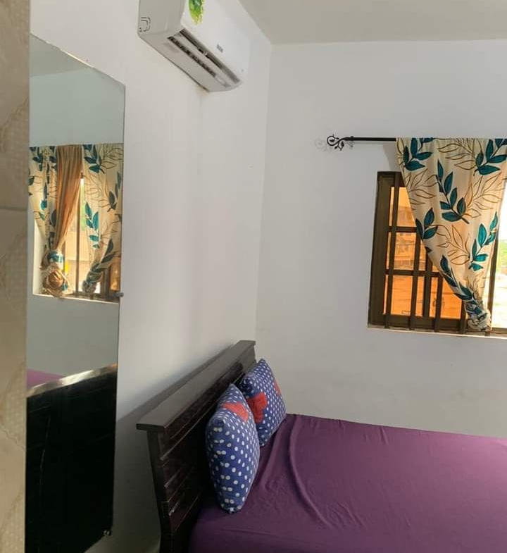 CHIC APPARTEMENT MEUBLÉ DE CHAMBRE SALON , WC DOUCHE INTERNE CHAUFFE EAUX ET CLIM INSTALLÉS, CUISINE AVEC TOUTES LES USTENSILES DISPONIBLE SEUL À L’ÉTAGE