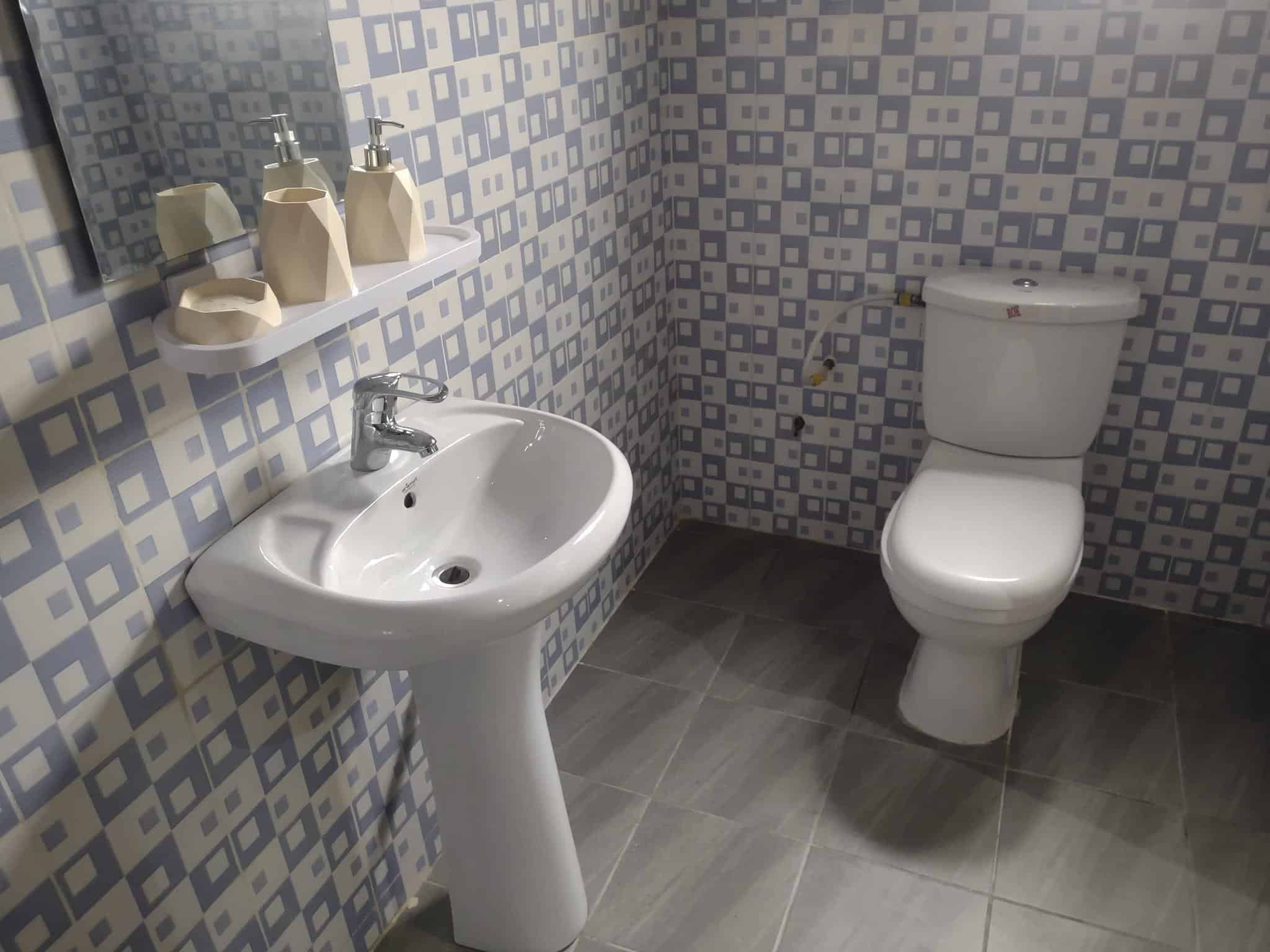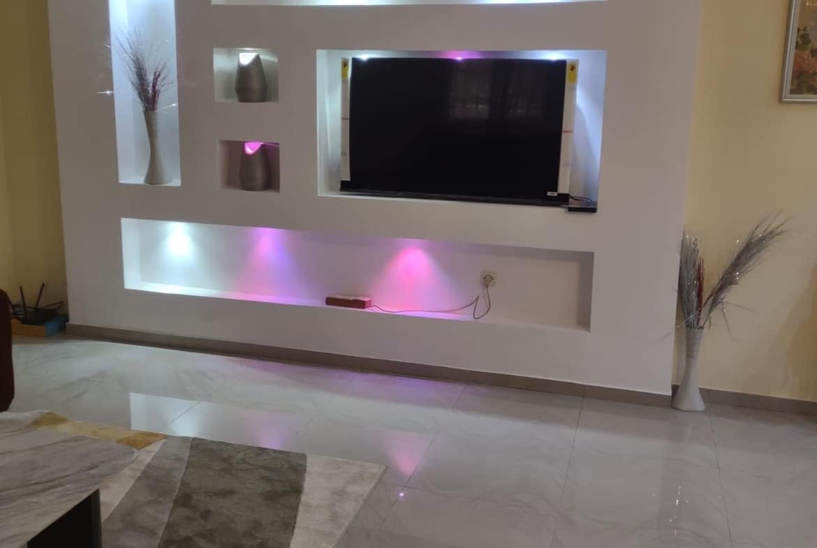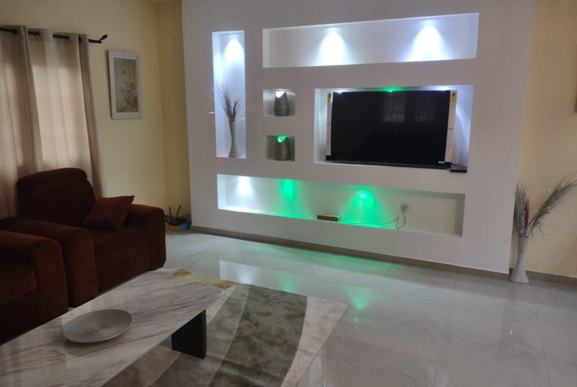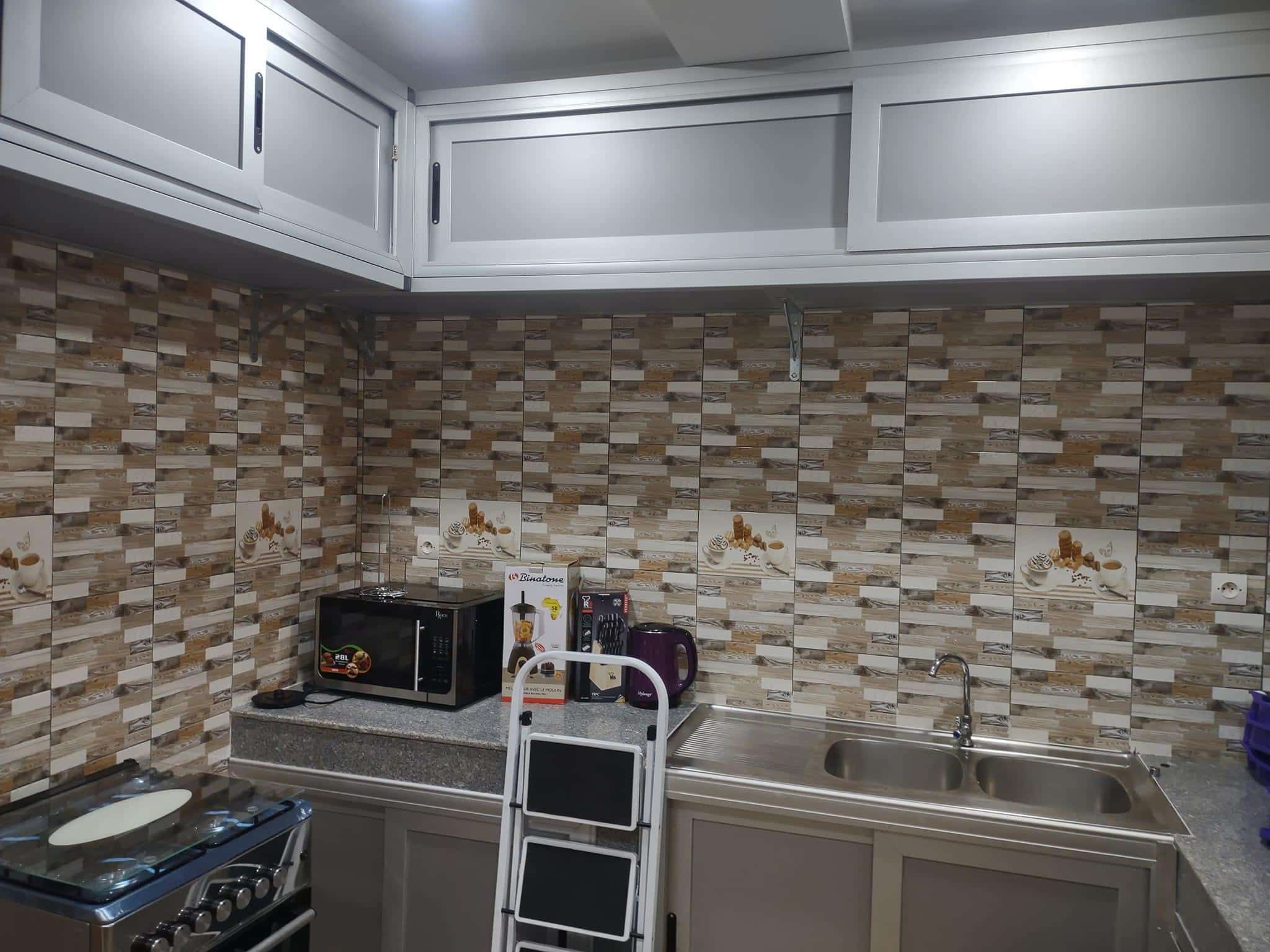 * LA CUISINE EST BIEN LARGE Avec : Un frigo de 400L ; une Machine à laver, micro ondes etc…. Tout est Disponible ( accessoires de cuisine )