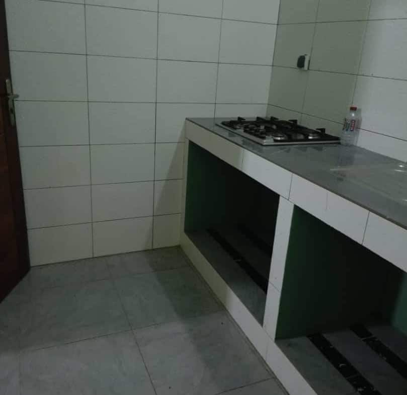 Un appartement à l’étage (r+1),d’une chambre salon wcd interne, cuisine interne, gazinière, garage disponible pour voitures