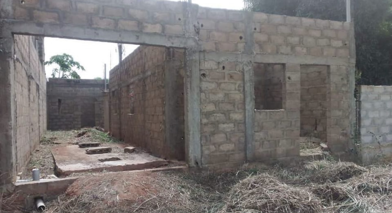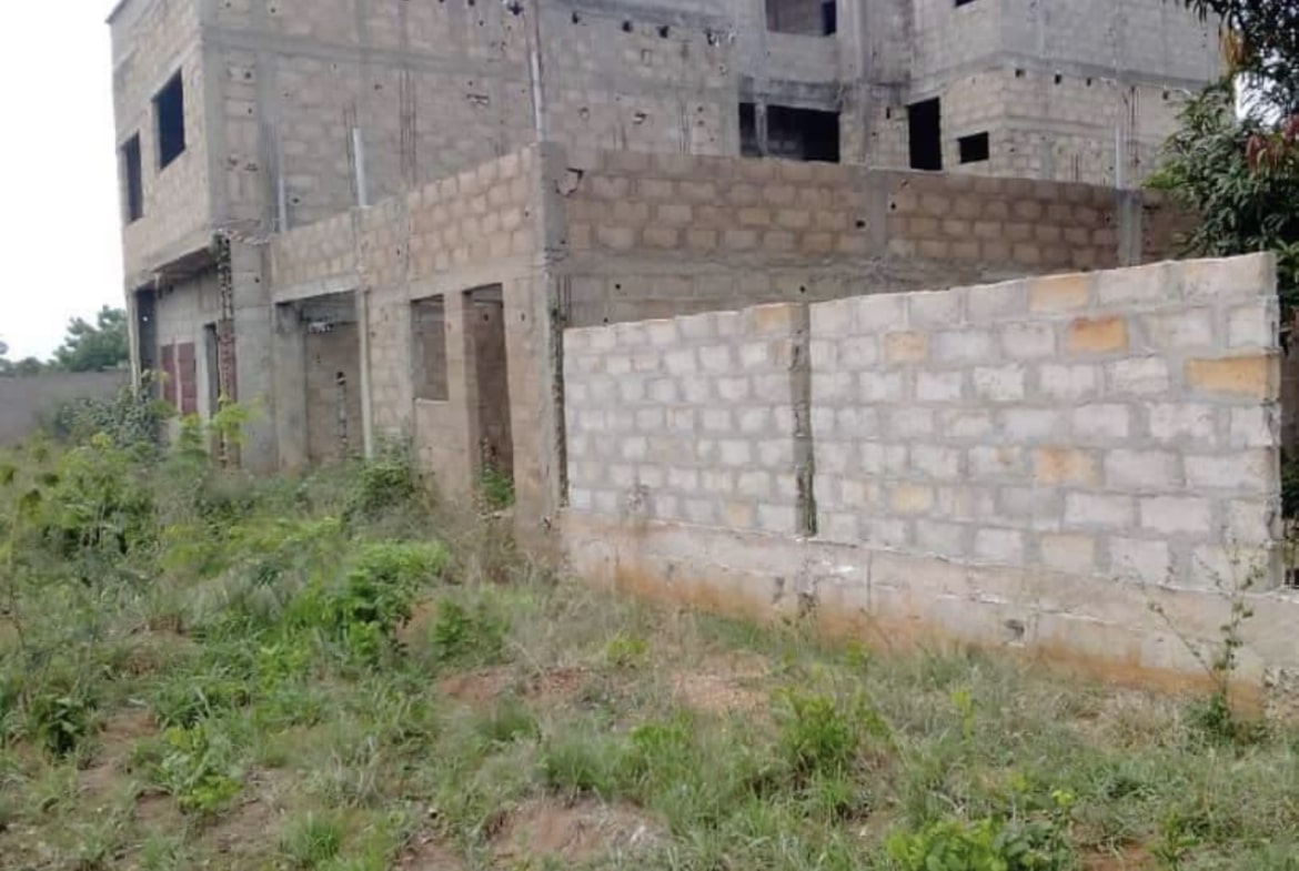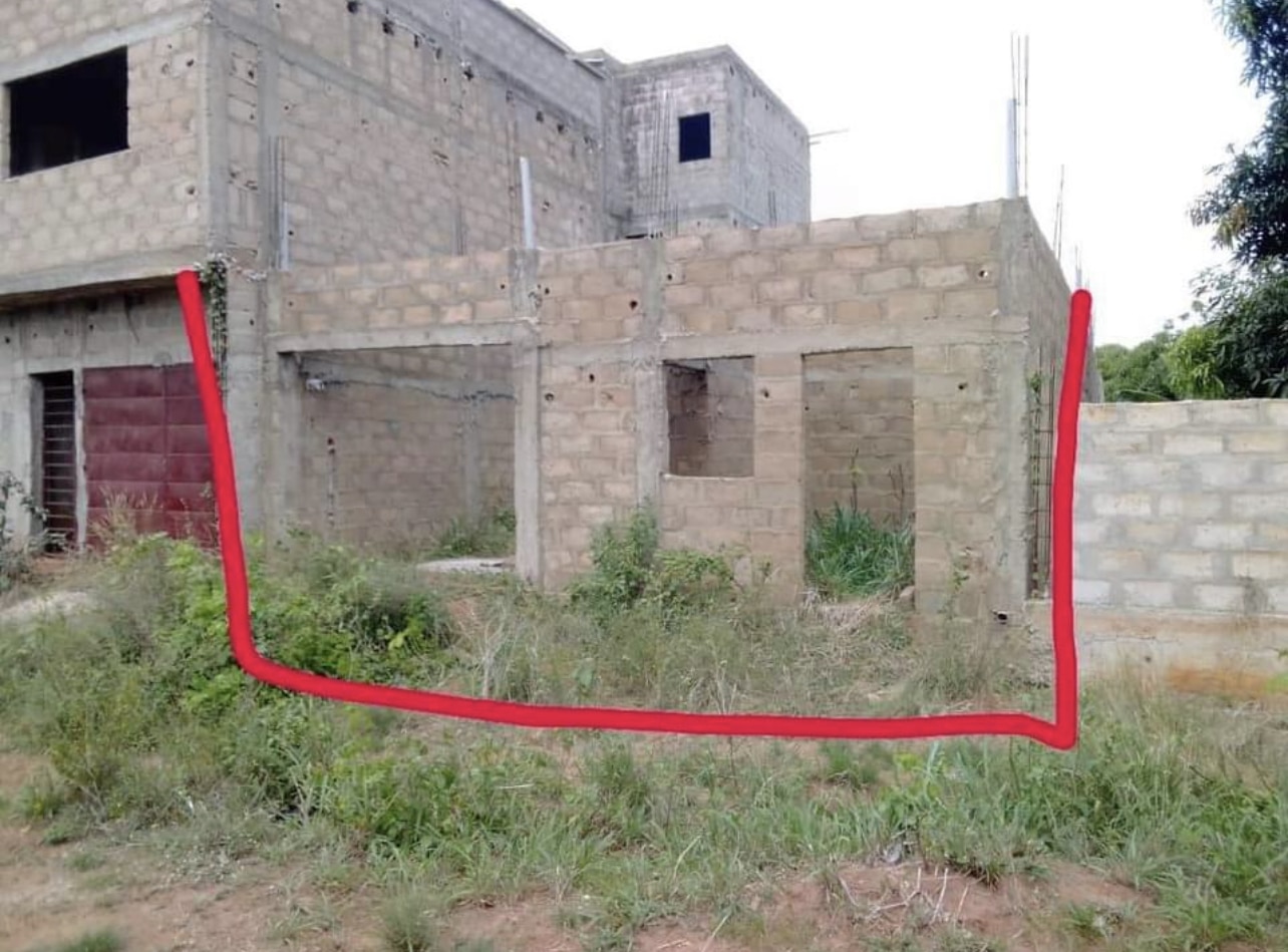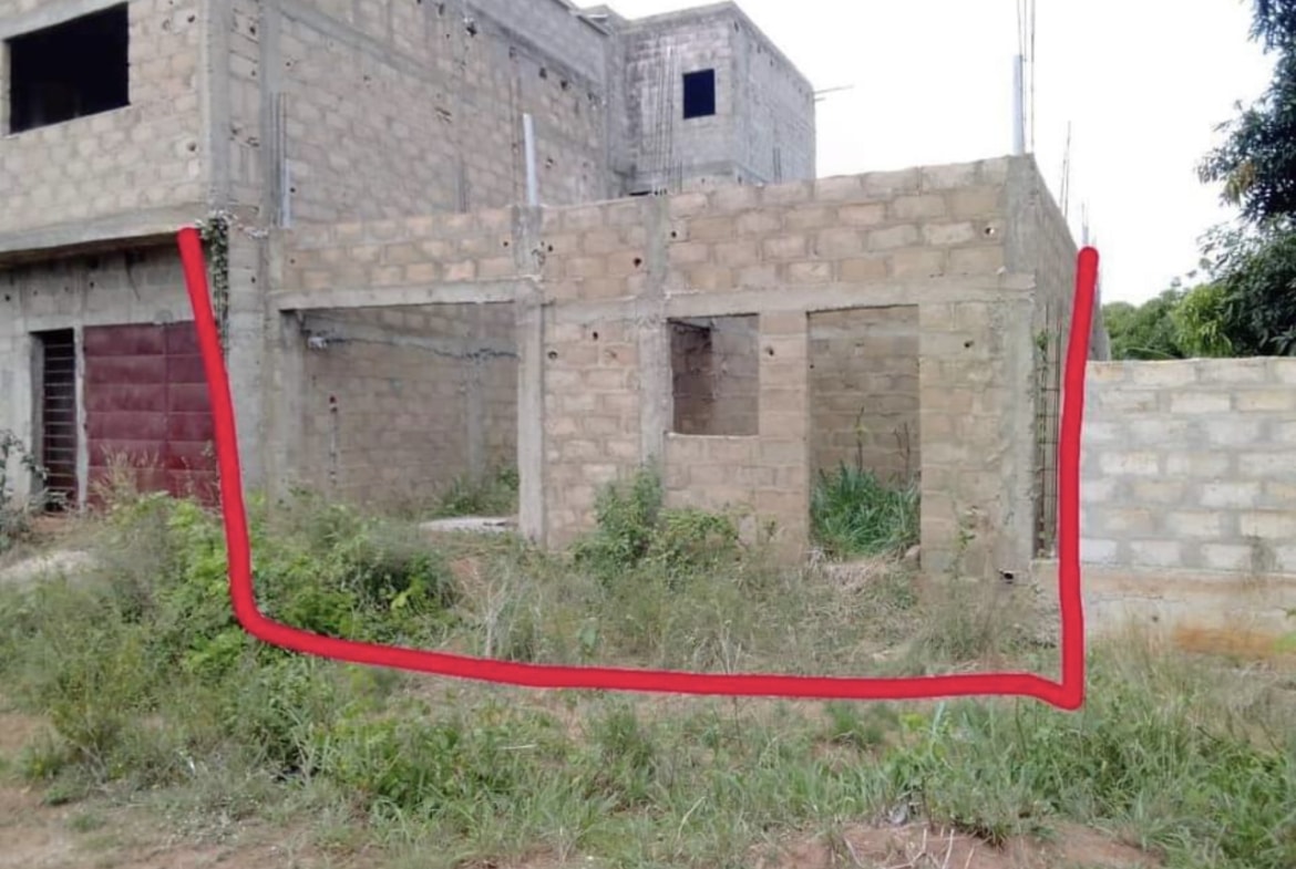 Maison inachevée sur quart de Lot niveau dalle, entouré de grandes maisons, composé de Chambre salon WC douche interne cuisine. + 01 dépendance, WC douche visiteur. Garage pour 02 Voitures