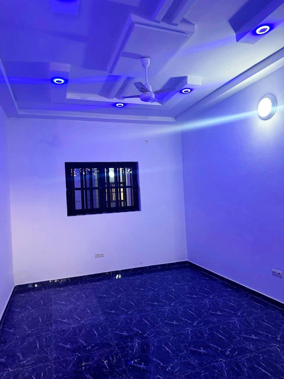 chaque chambre bien staffée dispose de son sanitaire et brasseur . salon avec de spotes light dispose d’un clime et brasseur. cuisine bien large. garage et cash power personnel.
