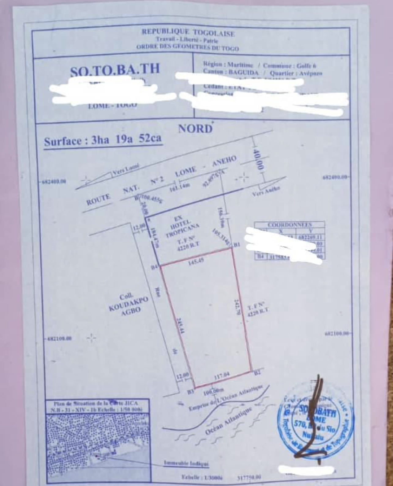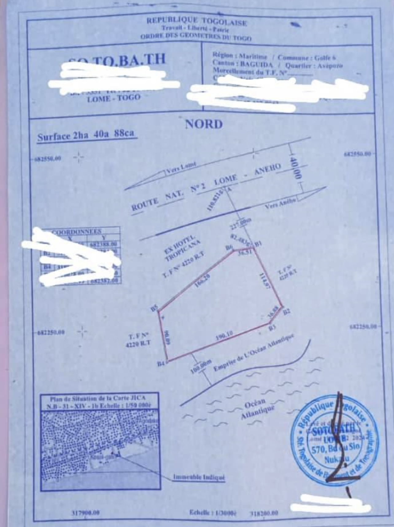Terrain 96 lots à Avepozo côté plage