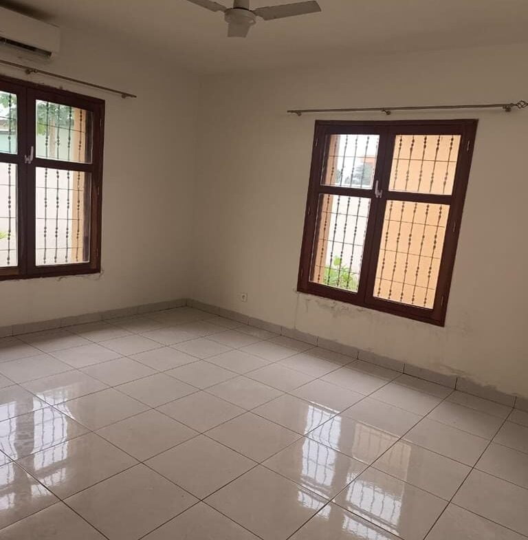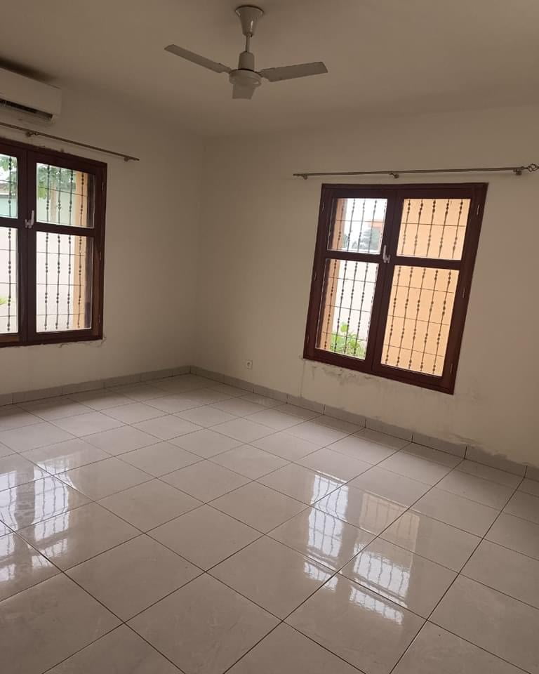 Villa cour unique de *quatres chambres salon climatisées* espace jardin, garage pour deux voitures.